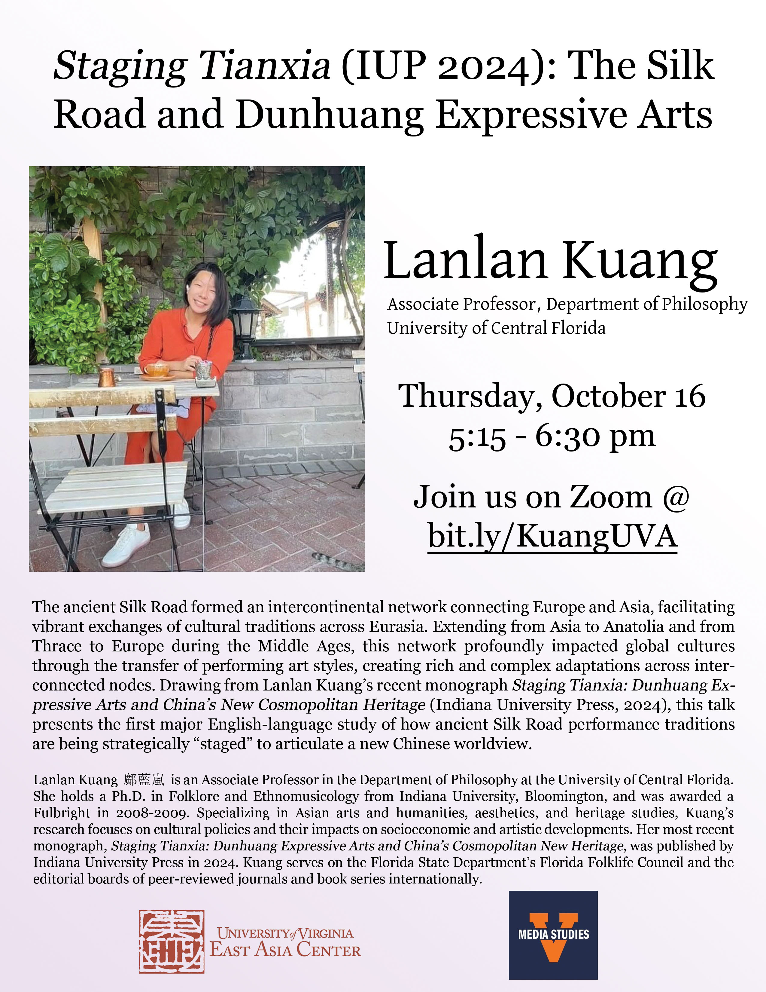 The East Asia Center will be hosting Lanlan Kuang, Associate Professor in the Department of Philosophy at the University of Central Florida, for the speaker series lecture "Staging Tianxia: The Silk Road and Dunhuang Expressive Arts."
